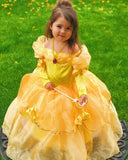Have your kids feel just like Belle in this beautiful ball gown Dress. This is the ULTIMATE princess Dress set that includes the Gown, Gloves, underskirt, crown and wand.