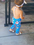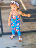 Our Terri Blue Rompers are as Practical as they are pretty! It makes the perfect outfit to just jump on & go without sparing the cuteness factor. Has an open back with a halter top which makes for quick and easy changes.