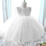 This beautiful lace dress comes in pink and white is perfect for Christenings, Photos, Birthdays or just to Dress up. The Bow detaches and measurements are showin in photos. Please check sizing